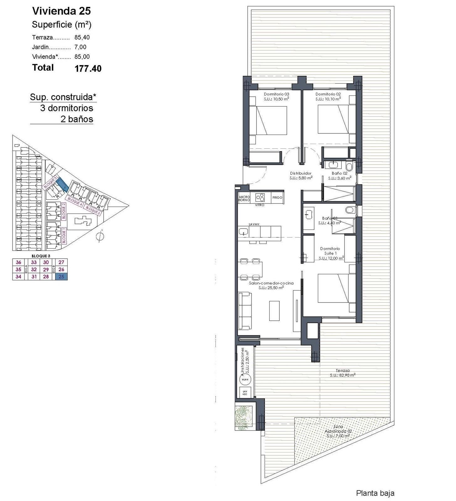 Apartamentos de nueva construcción en La Serena Golf-Los Alcázares, cerca de la playa Vida moderna frente al campo de golf en la Costa Cálida Descubra este exclusivo complejo residencial de nueva construcción situado en La Serena Golf, en Los Alcázares. Esta urbanización contemporánea cuenta con 66 elegantes apartamentos de 2 o 3 dormitorios y 2 baños, uno de ellos en suite, diseñados para ofrecer comodidad, elegancia y un excepcional estilo de vida mediterráneo a solo 300 metros del Mar Menor. Los Alcázares es una encantadora localidad costera conocida por su ambiente relajado, sus playas de arena y su largo paseo marítimo. Con más de 300 días de sol al año, la zona ofrece un entorno perfecto para la vida al aire libre, los deportes acuáticos y el golf. La localidad también cuenta con una amplia selección de restaurantes, tiendas, puertos deportivos e instalaciones deportivas, lo que la convierte en un destino muy deseable tanto para la residencia permanente como para las vacaciones. Apartamentos con terrazas, jardines y soláriums privados El complejo residencial ofrece varios tipos de propiedades que se adaptan a diferentes estilos de vida. Los compradores pueden elegir entre apartamentos en planta baja con jardines privados, viviendas en plantas intermedias con amplias terrazas o áticos con terrazas y grandes soláriums en la azotea. Los soláriums incluyen una ducha exterior y ofrecen la opción de añadir una cocina de verano y un jacuzzi privado, creando un espacio ideal para relajarse y divertirse mientras se disfruta de las vistas abiertas al campo de golf y al paisaje circundante. Cada vivienda ha sido diseñada con interiores luminosos y espacios diáfanos que conectan a la perfección con las zonas exteriores. Servicios estilo resort y zonas comunes excepcionales Una de las características más distintivas de esta promoción es su concepto de estilo resort. Los residentes pueden disfrutar de una espectacular piscina estilo laguna de aproximadamente 190 m2 con acceso estilo playa y zonas de relax con camas balinesas. Las instalaciones comunes adicionales incluyen jardines paisajísticos, una zona de spa, gimnasio y sauna situados en el sótano. El complejo también ofrece un parque infantil, dos pistas de petanca y aseos comunes cerca de la zona de la piscina, creando un ambiente acogedor para los residentes y los invitados. Acabados de calidad y características modernas Los apartamentos están construidos con materiales modernos y especificaciones de alta calidad diseñadas para ofrecer comodidad y estilo. Cocina totalmente equipada con electrodomésticos de acabado en cristal blanco Baños con tocadores, mamparas de ducha y espejos retroiluminados Persianas motorizadas Paquete de iluminación básico Aire acondicionado por conductos totalmente instalado Plaza de aparcamiento subterráneo para cada propiedad Aparcamiento subterráneo para bicicletas y trasteros opcionales Ubicación privilegiada cerca de la playa y el golf Playa del Mar Menor a 0,3 km Golf La Serena junto a la urbanización Centro de Los Alcázares a 2 km Cartagena a 22 km Murcia a 40 km Aeropuerto Internacional de la Región de Murcia a 30 km Aeropuerto de Alicante-Elche a 90 km Las tranquilas y poco profundas aguas del Mar Menor son ideales para nadar, navegar y practicar paddle surf durante todo el año. Asegure su vivienda en La Serena Golf Resort Estos modernos apartamentos combinan la vida junto a la playa, vistas al campo de golf desde la mayoría de las unidades y comodidades estilo resort en una de las zonas más atractivas de la Costa Cálida. Póngase en contacto con nosotros hoy mismo para recibir más información o concertar una visita y asegurar su nueva vivienda en La Serena Golf-Los Alcázares.